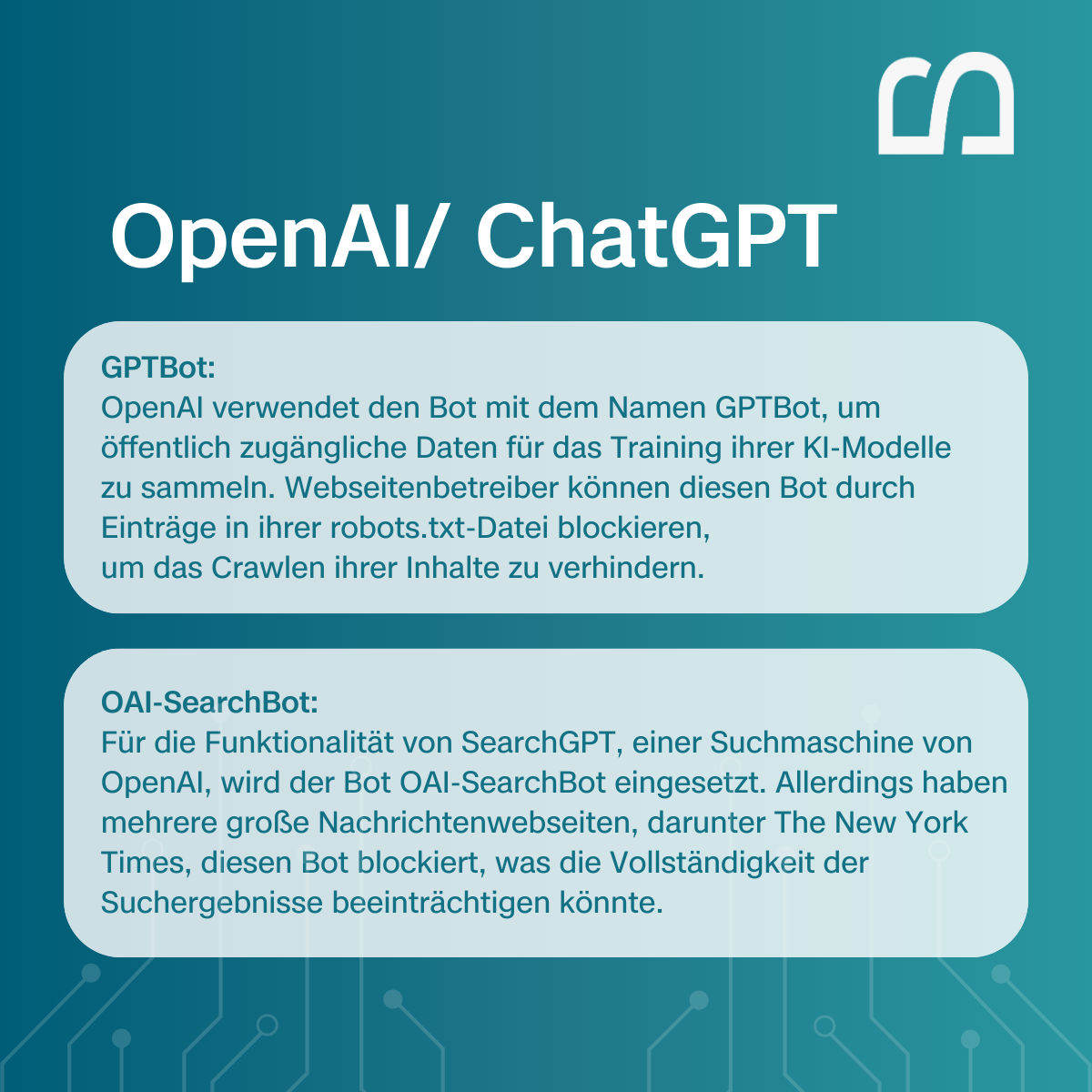 Tipp: Tauchen GPTBot oder OAI-SearchBot nicht auf, bist du höchstwahrscheinlich in KI-Chats unsichtbar.