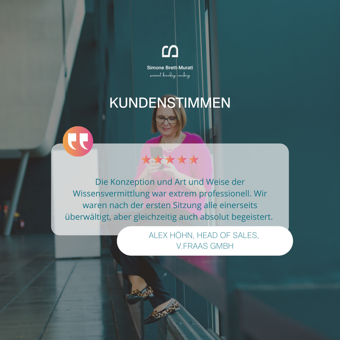 Das bedeutet nicht, dass es anonymisiert und digitalisiert wird, sondern es bleibt absolut persönlich und auf Personen bezogen. Und last but not least natürlich auch, dass das Training mit dir einfach gut war, weil es eine gute Mischung aus Theorie war und dann aber auch wirklich Do it yourself Aneignung und dann aber auch Tipps und Tricks von dir auf einer ganz persönlichen, unkomplizierten Ebene.