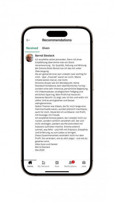 - Ein glaubwürdiges LinkedIn Profil von A bis Z: Abschnitte, roter Faden, Verlinkungen, Empfehlungen, visuelle Gestaltung